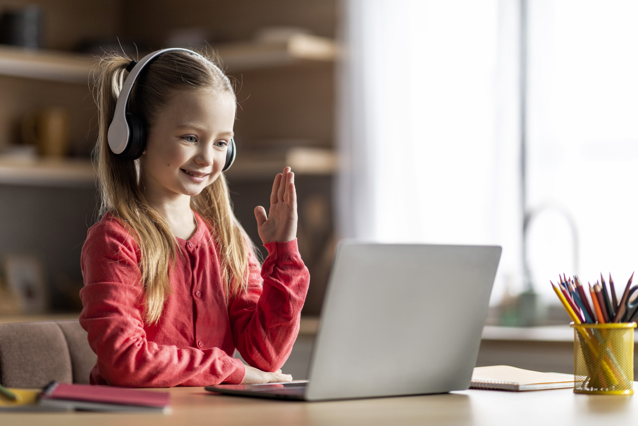 Students learn from the safety and comfort of home while participating in a structured, supportive virtual classroom environment.